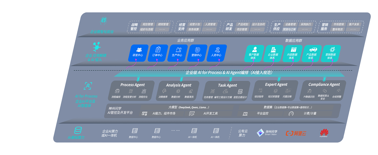 壹号平台问学智车解决方案是一套基于AI技术的汽车行业智能化系统,,,覆盖从底层算力到顶层AI应用的全栈方案。。方案由算力层、、模型层和应用层组成:算力层,,,方案支持多种一体机配置,,具备云端灵活部署、、、多云适配以及动态优化计算资源的能力;模型层,,,,壹号平台问学平台版提供了企业级AI应用一站式构建与管理平台,,支持基于后训练强化技术的汽车企业专属模型的训练、、、、评测和运营;应用层,,,壹号平台问学DeepSeek版提供包括超级员工、、、、智能招采、、智能营销、、智能客服、、AI for BI等一系列解决方案,,可助力汽车行业实现数字化转型,,,让管理更智能、、、响应更敏捷。。