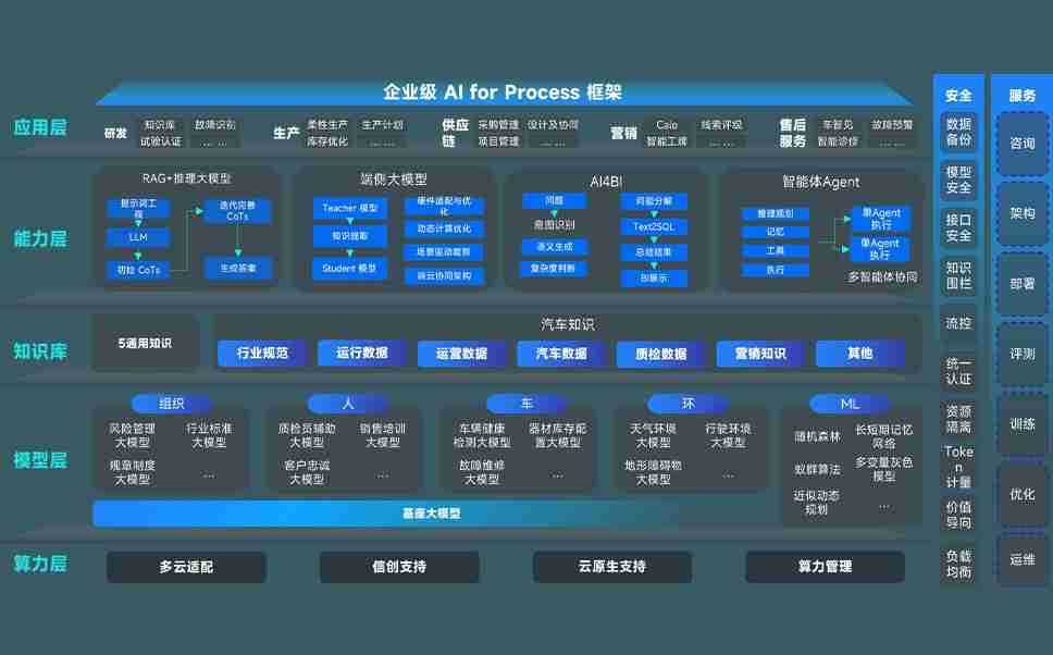 端到端的一站式AI工作空间深度融合了从企业战略规划到日常经营的全流程业务板块,,,定向解决车企内部领域多、、、、部门多、、、、链条长、、场景碎片化等难题,,支持车企快速构建以AI为核心的生产力写作体系,,实现任务执行与AI能力的无缝集成与交互